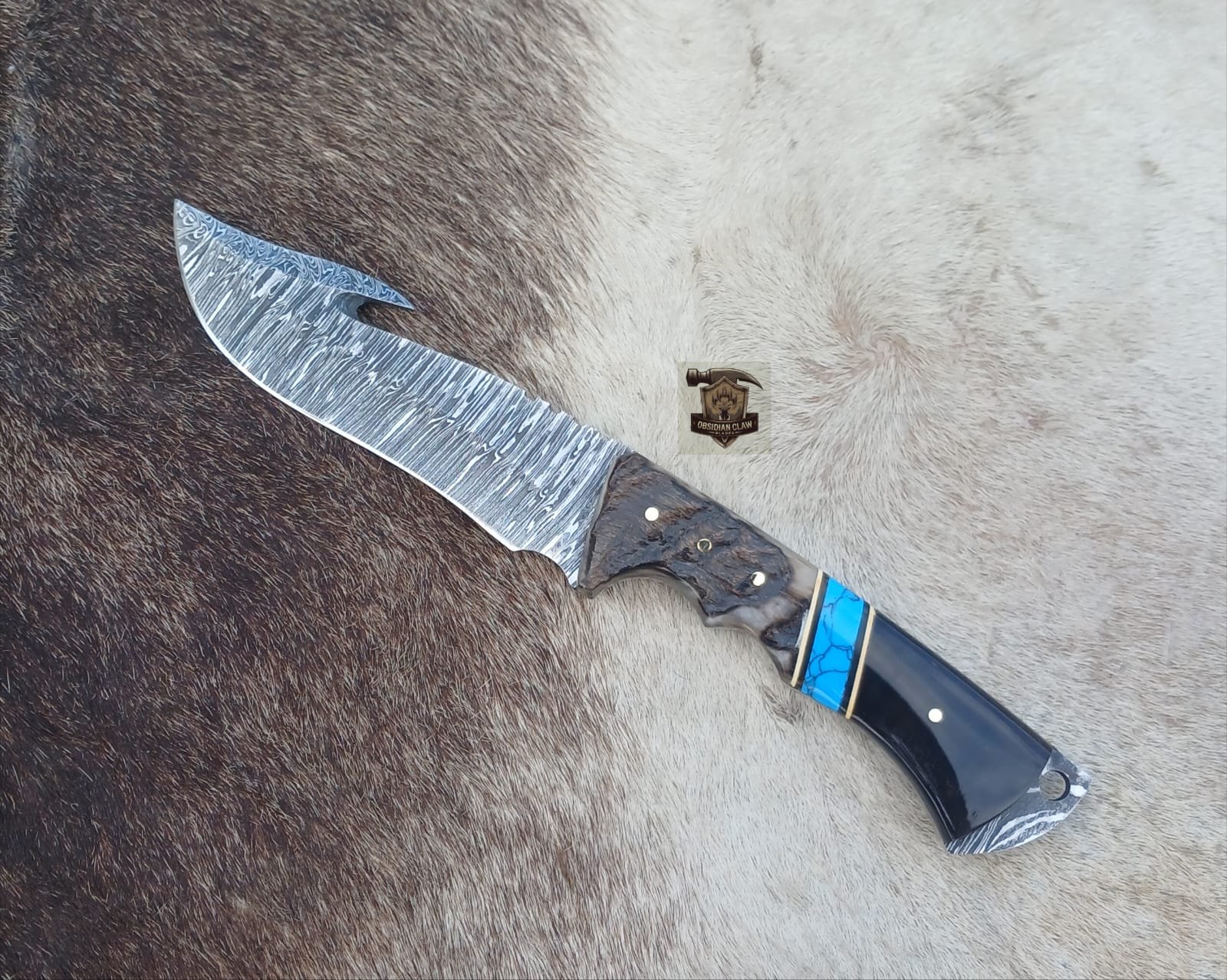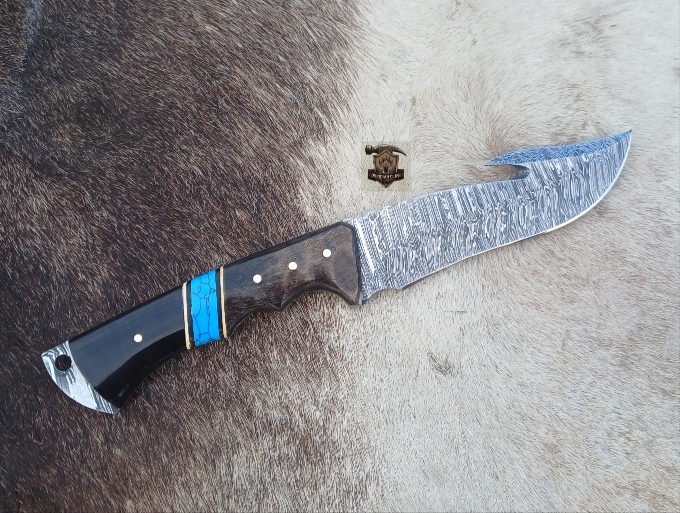 Damascus steel blade Gut hook knife Handcrafted Precision and Durability