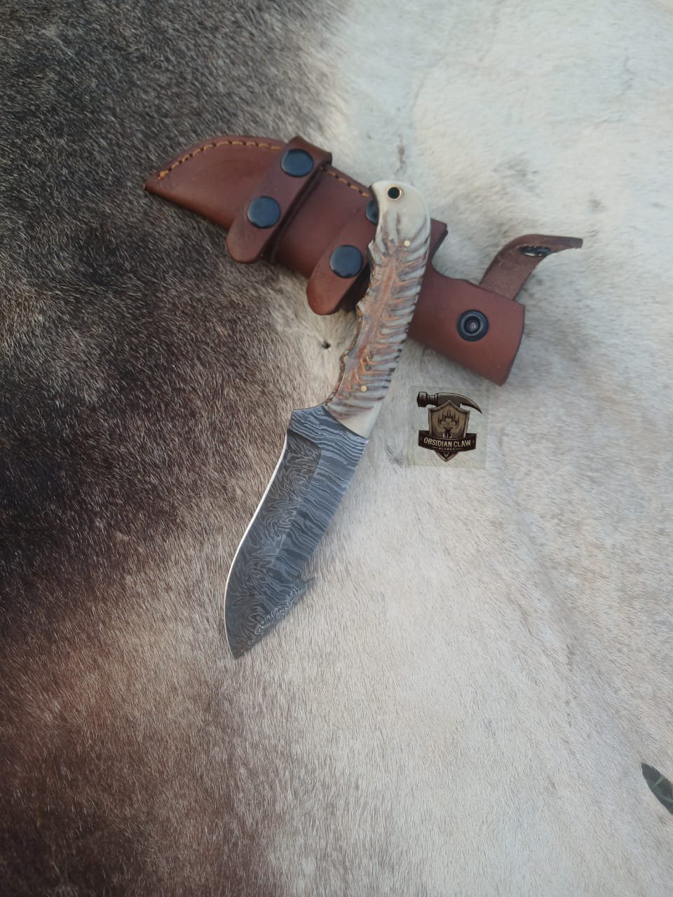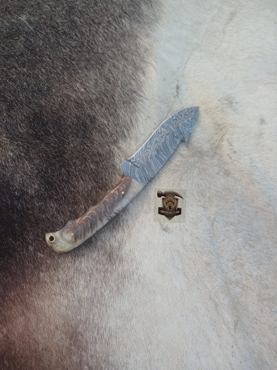 Each knife is handcrafted with meticulous attention to detail, ensuring a well-balanced and ergonomic design. The blade is forged from [Damascus steel], known for its exceptional edge retention, toughness, and resistance to corrosion. Heat-treated for optimal hardness, this blade will hold up to repeated use while maintaining a razor-sharp edge.