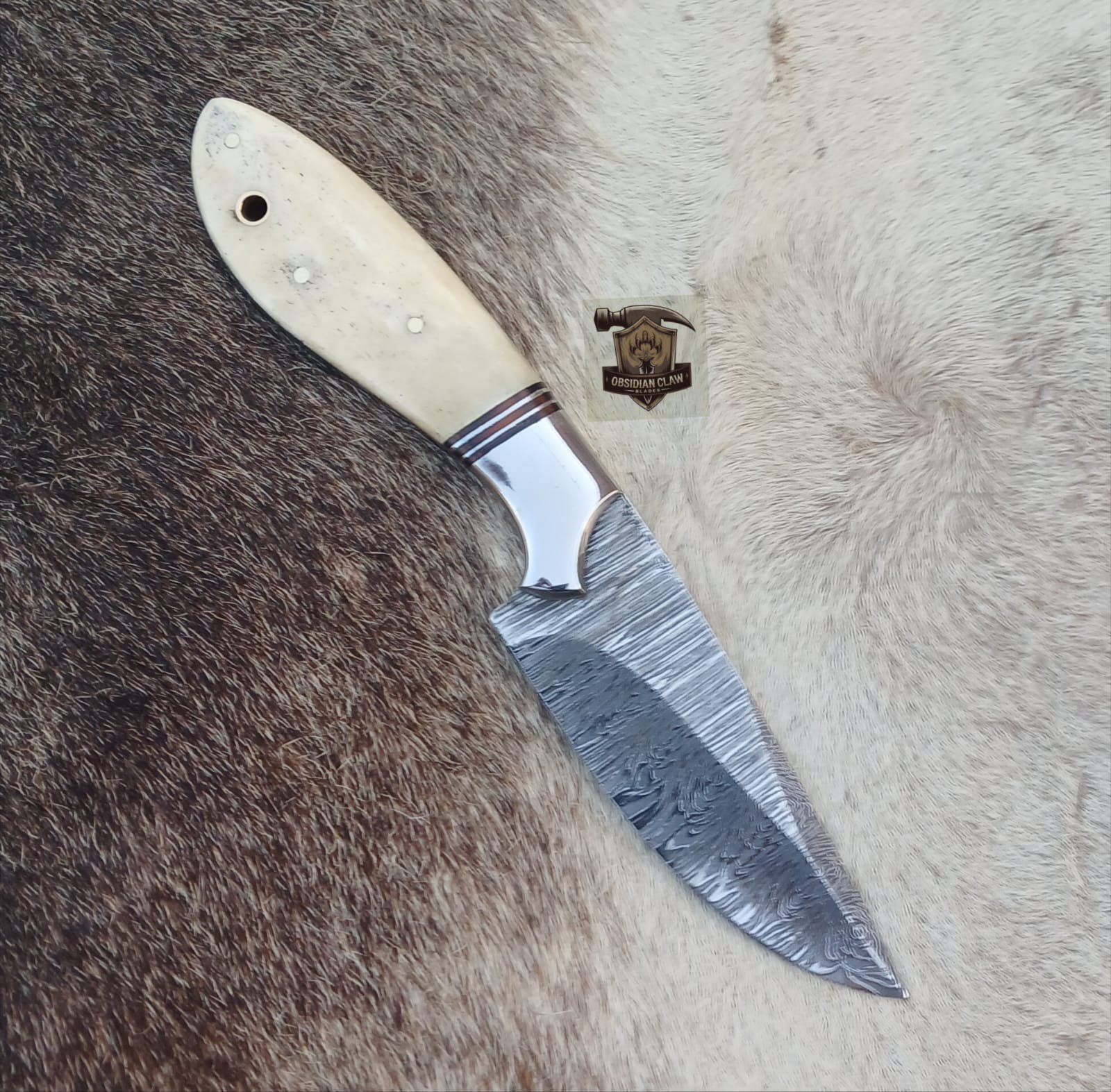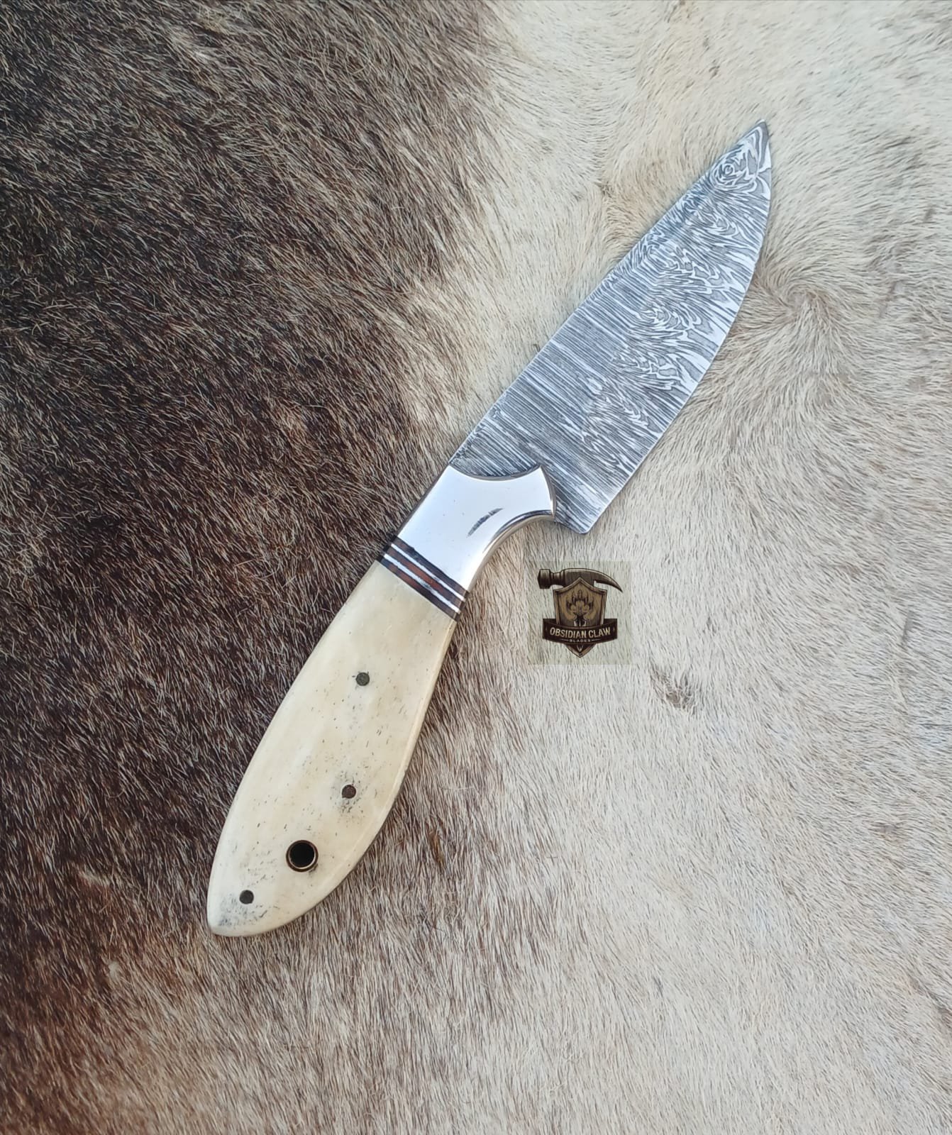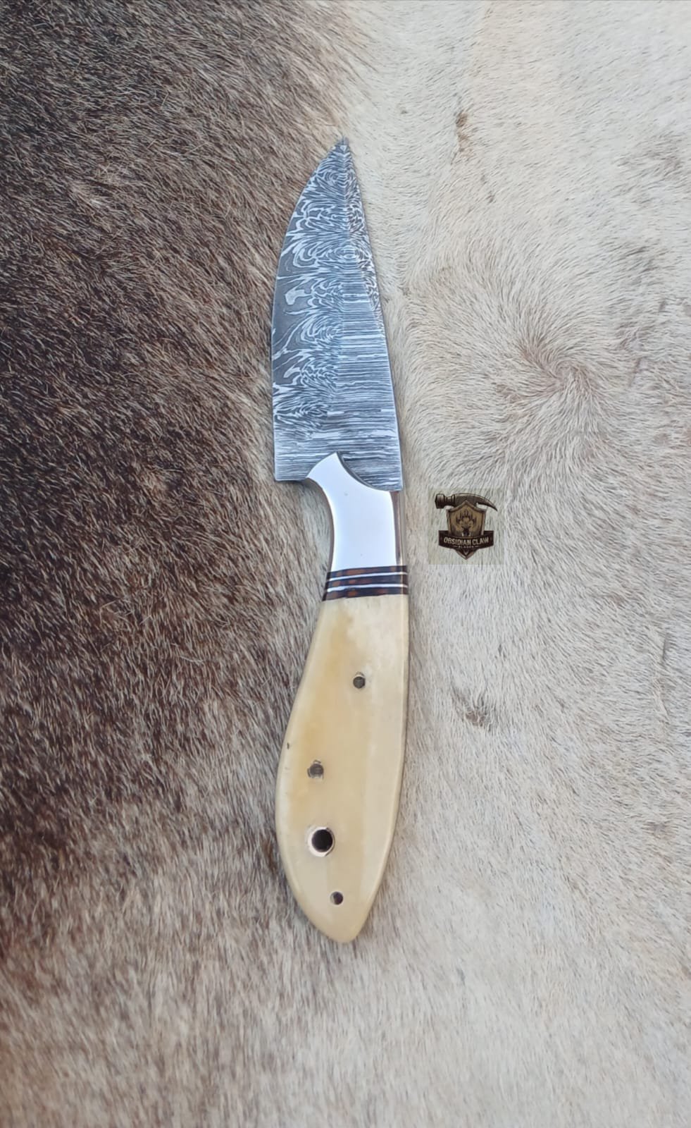 Each knife is handcrafted with meticulous attention to detail, ensuring a well-balanced and ergonomic design. The blade is forged from [Damascus Steel], known for its exceptional edge retention, toughness, and resistance to corrosion. Heat-treated for optimal hardness, this blade will hold up to repeated use while maintaining a razor-sharp edge.