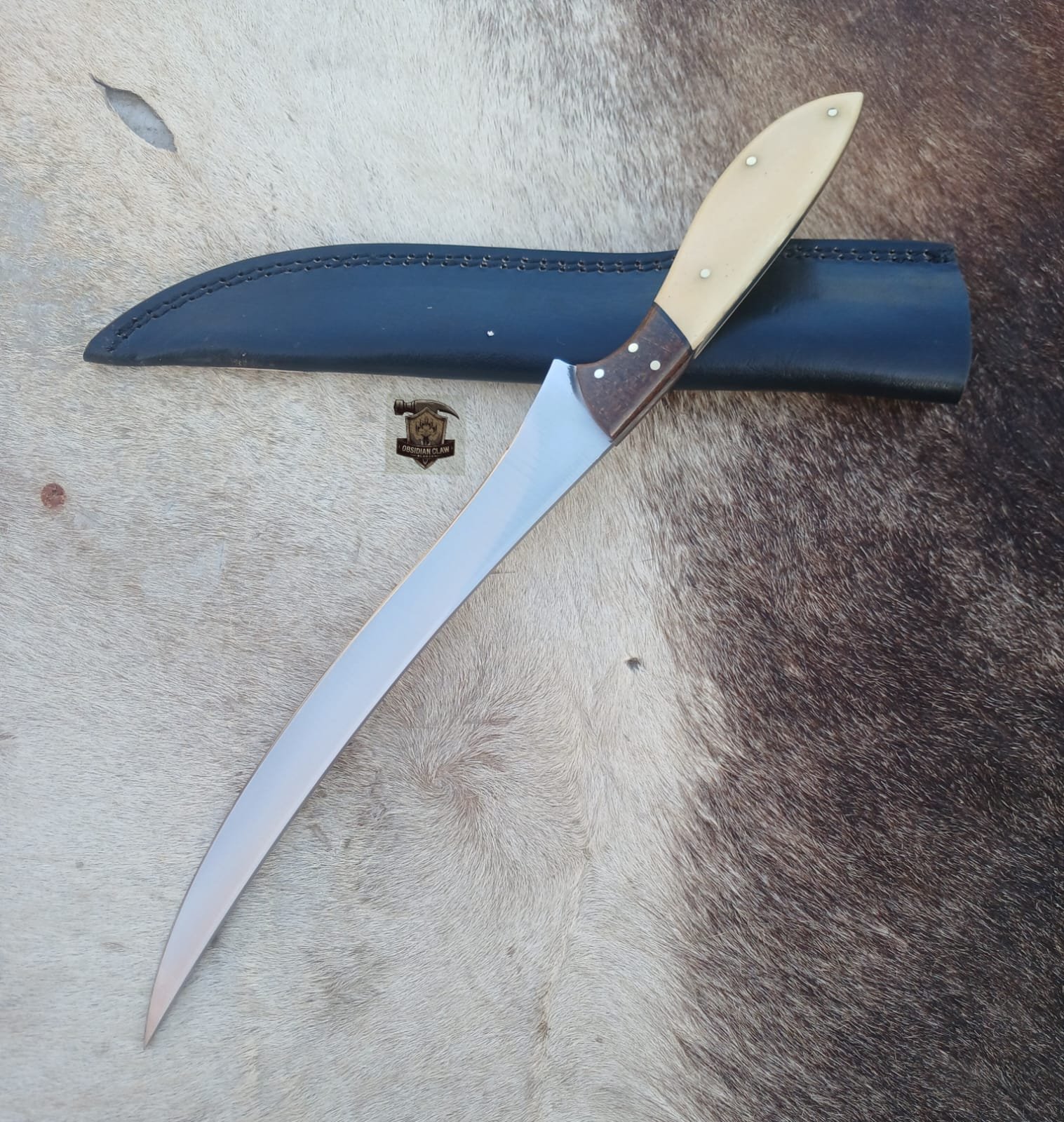 The handle is carefully shaped for a secure and comfortable grip, reducing hand fatigue during extended use. Made from [Combination of Italy wood with White bone, Brass pin], it provides excellent durability and resistance to wear, ensuring a long-lasting and reliable performance in any condition.