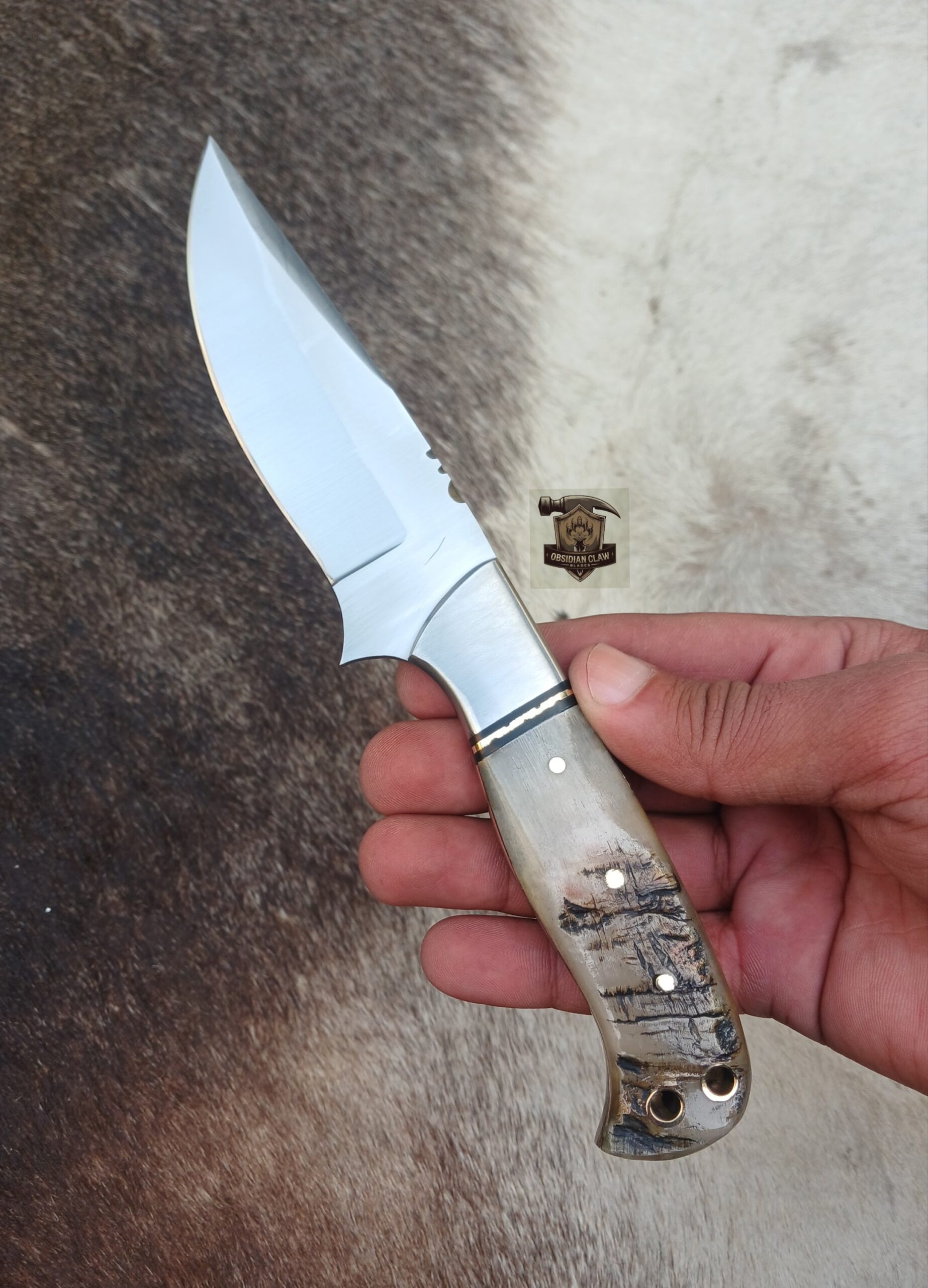 The handle is carefully shaped for a secure and comfortable grip, reducing hand fatigue during extended use. Made from [Natural RAM horn with Brass pins], it provides excellent durability and resistance to wear, ensuring a long-lasting and reliable performance in any condition.